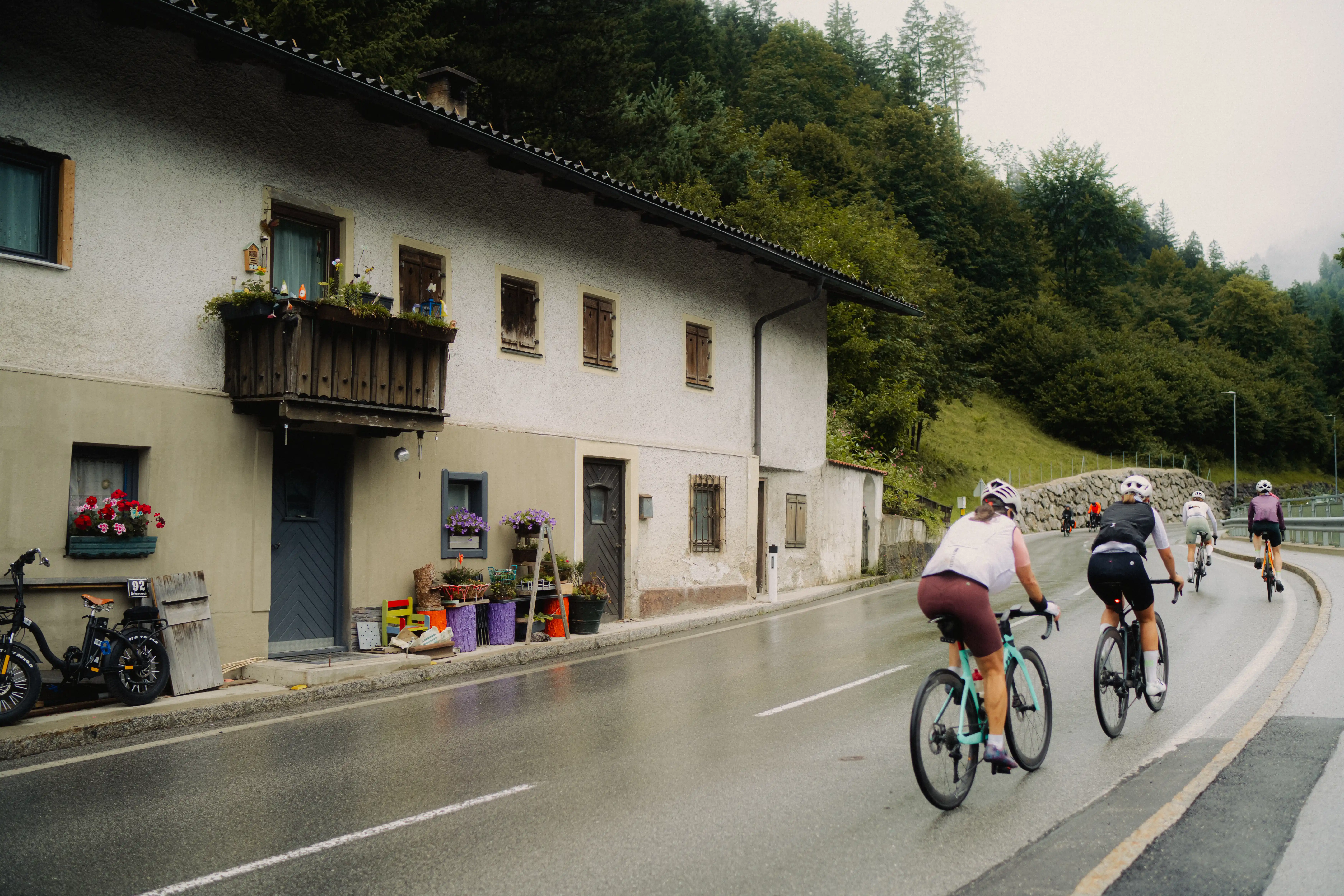 Was viele vergessen: Wie viel leichter alles wird, wenn man sich um nichts kümmern muss. Gepäck? Im Van. Snacks, Gels, Getränke? Immer da, wo man sie braucht. Keine muss daran denken, ob sie die Regenjacke eingepackt hat. Niemand hat das Gefühl, zurückzubleiben, falls man einen Platten bekommt oder die Beine nicht wollen. Hier kümmern sich andere – damit die Radfahrerinnen sich auf das Wesentliche konzentrieren können. Und das ist eben nicht das Material, sondern das Gefühl. Den Fahrtwind zu spüren und einfach mal zusammen durch die Alpen zu brettern.