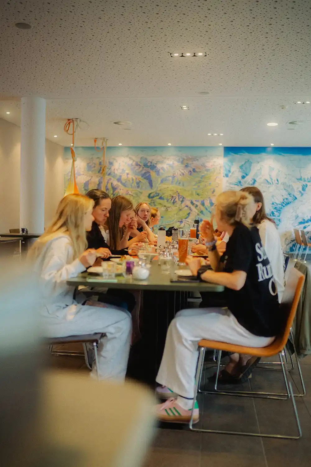 Es ist der Abend nach der Königsetappe. Der Blick in die Gesichter der Teilnehmerinnen erzählt mehr als jeder Höhenmeter: müde Augen, aber hellwach. Keine Spur von Hektik oder Druck. Stattdessen liegt da eine spürbare Ruhe in der Luft – vielleicht, weil die größte Anstrengung schon hinter ihnen liegt. 3.000 Höhenmeter, teils im Regen, oft am Limit. Und doch sitzen sie jetzt beim Abendessen zusammen, lachen, erzählen, hören einander zu. Nicht oberflächlich, nicht aufgesetzt – sondern ehrlich und offen.